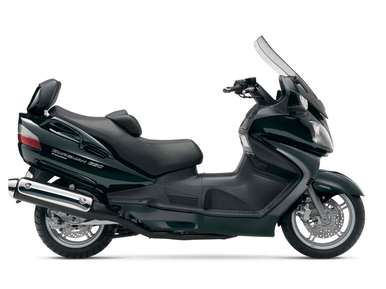 2008 Burgman 650 Executive Get ready for the ride of your life – on the stylish Burgman 650 Executive, it has all the great features of the Burgman 650 with ABS, an electic adjustable windshield and a passenger backrest. With the largest engine in its class, the Burgman 650 rewards you with strong acceleration around town or on the highway. Its refined fuel injection system offers instantaneous throttle response. And, for convenient operation and incredibly smooth performance, it has a technically advanced Suzuki Electronically Controlled Continuously Variable Transmission (SECVTTM). Wherever you ride, you and your passenger will appreciate the smooth, comfortable ride, plush, responsive suspension, and a deep, well-padded seat complete with a backrest for the rider. Large floorboards and spacious ergonomics further contribute to your comfort. The Burgman 650 is as practical as it is stylish. It has terrific storage space, including a cavernous underseat storage area capable of holding two full-coverage helmets. What’s more, three front compartments with lids allow easy storage of and access to your smaller items. The Suzuki Burgman 650. Unique styling – unbeatable performance.