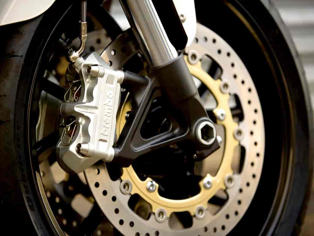 Twin 320mm floating discs. Twin Brembo 4 piston 4 pad radial calipers. Radial master cylinder
