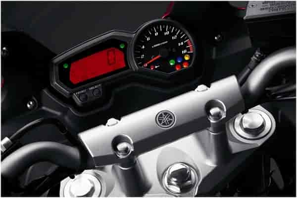 FZ1 based multi-function instrument assembly. Features include an analog tach, digital speedo, dual tripmeters, fuel reserve tripmeter, clock, fuel gauge and water temperature as well as a selection of warning lights. The back lighting can be adjusted to suit rider preferences.