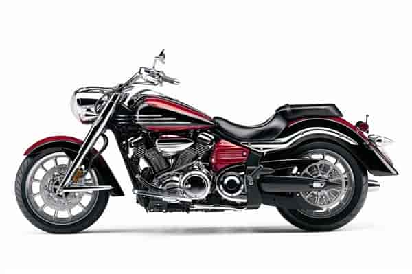 Frame mounted oil cooler is a first on a Yamaha cruiser. The cooler maintains consistent oil temperatures for optimum cooling and lubrication of this massive V-twin powerplant.