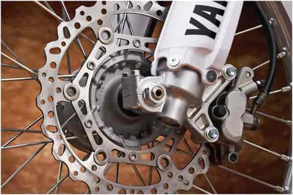 All new compact Nissin twin piston front caliper utilizes lightweight aluminum pistons and reduces weight by 27%. The braking performance is excellent with great feel and control. This is the same caliper as our 4-stroke YZ-F models.