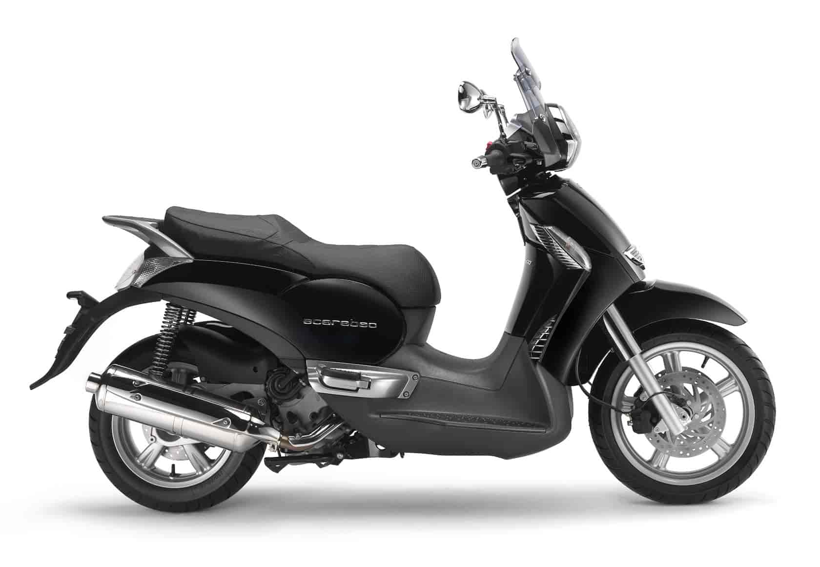 One glance is all you need to pick out a Scarabeo i.e. from a thousand other bikes. Scarabeo i.e. is unique, a perfect mix of classic styling and modern finish that inevitably sets the pace. But like every other member of the family, Scarabeo i.e. with its unmistakable, classical lines is not just a pretty face! Its sleek lines hide advanced ergonomics and functionality, and incorporate a wide range of solutions to make life in the saddle easier and more comfortable than ever. Scarabeo i.e. is equipped with an adjustable windshield and the under-seat storage compartment is the biggest of any large wheeled scooter.