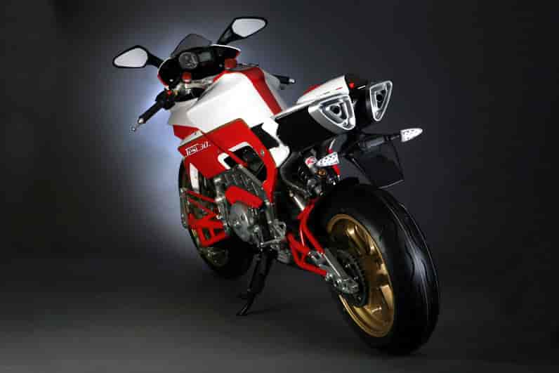 Concentrating on innovative technical solutions, the TESI 3D has been developed entirely by our in-house staff at the Bimota factory in Rimini. Italy. Dressed in our traditional color-scheme of white, red, and gold, the motorcycle is propelled by a Ducati 1079cc engine. The electrical environment is developed by Bimota.