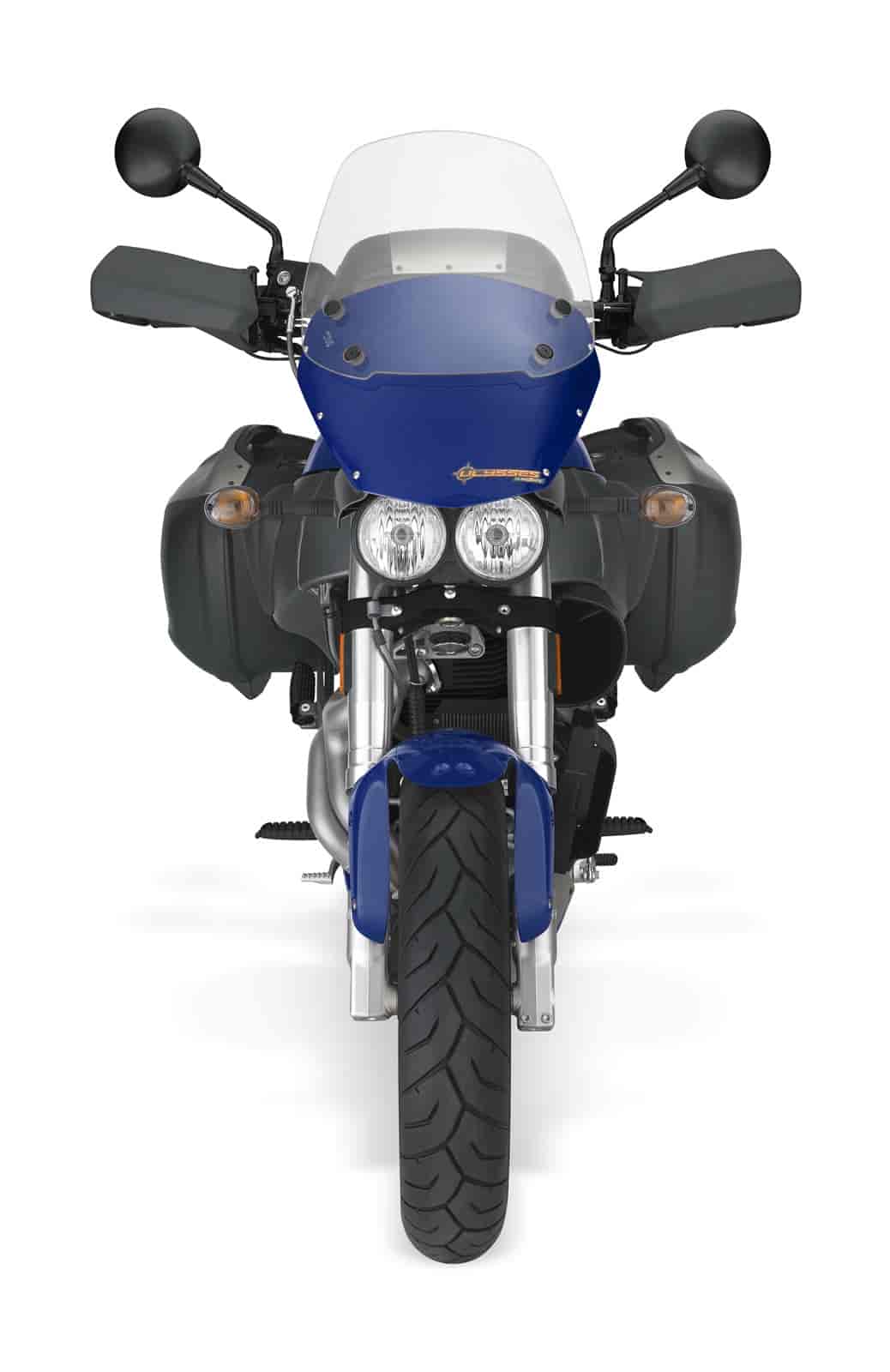 A wide Supermoto-style handlebar gives the rider extra leverage and control behind wind deflectors and a two-piece windscreen designed to limit buffeting. The broad, torque-filled powerband of the 103-hp Buell Thunderstorm 1203 V-Twin engine gives the Ulysses the ability to proceed at lower speeds over unpaved roads with less gear shifting, and the power to bomb down paved backroads.