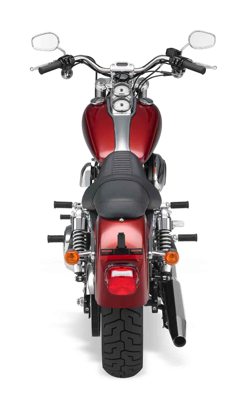 The aptly-named Dyna Low Rider provides low center of gravity with 25.8-inch seat height, stylized low-profile suspension and raked-out forks. Pull-back handlebar riser, mid-mount foot controls and standard highway pegs add to functional ergonomics and long-range comfort.