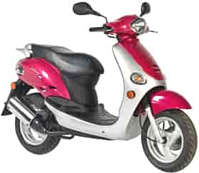 The Sting 50 combines the retro theme and KYMCO’s peppy two-stroke 49cc engine. Clean burning and EPA approved, the Sting 50 is available in light green/silver, light blue/silver, and rose/silver.
