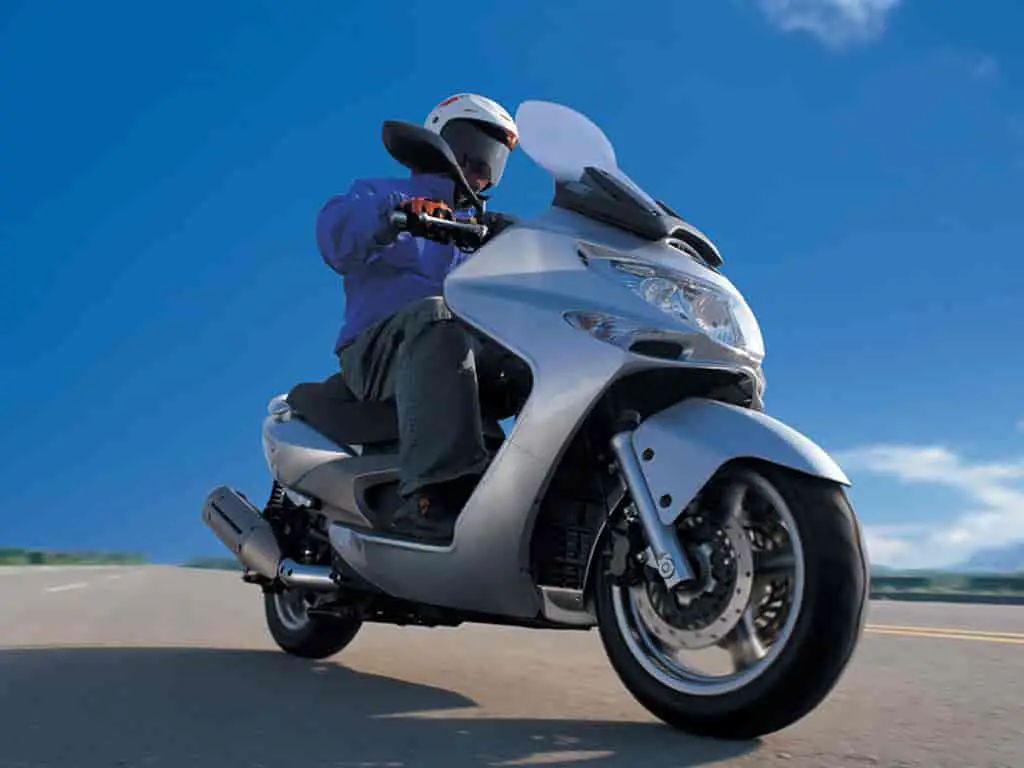 Additional Features: Dual front disks with dual piston calipers (optional ABS available), single piston floating rear caliper, low center of gravity, adjustable rear struts, elegant 3 pod instrument cluster, adjustable brake levers, modern 2 tone colour scheme, adjustable backrest, sporty black satin rear view mirrors, sleek design, side stand with integrated engine kill switch, sturdy center stand, hand parking brake, textured black satin side panels, under seat storage with 12v outlet, light and cell phone holder, folding aluminium passenger pegs.