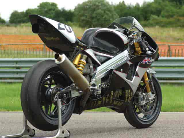 Chassis Twin spar aluminium, by Spondon Front Suspension Ohlins upside-down fork Rear Suspension Ohlins specially made long-stroke single-sided direct connection unit Brakes AP Discs with radial mounted front callipers and rear 2 piston brake calliper. Wheels Dymag 16.5in Tyres Dunlop Weight 130kg (dry)