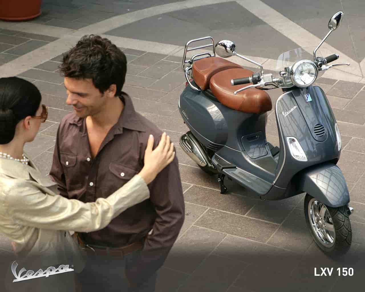 Developed on the base of the 2005 Vespa LX, the LXV was designed as a tribute to the 1960s Vespas. The updates to the LXV are on the accessory parts to the metal body, such as the headlamp and handlebars. The headlamp remains in its original position on the handlebar, like the 1960s scooters from which the Vespa LXV is derived, but in a slimmer, more minimalist version to emphasise the ‘naked’ handlebar and to give the front of the vehicle a more lightweight look. The analog instrumentation is placed in a chrome-plated frame while the unique graphics resemble those in vogue in the 1960s. Real leather is used on the saddle, which is designed with a separate passenger seat just as on the early Vespa models, underneath which is a storage compartment.