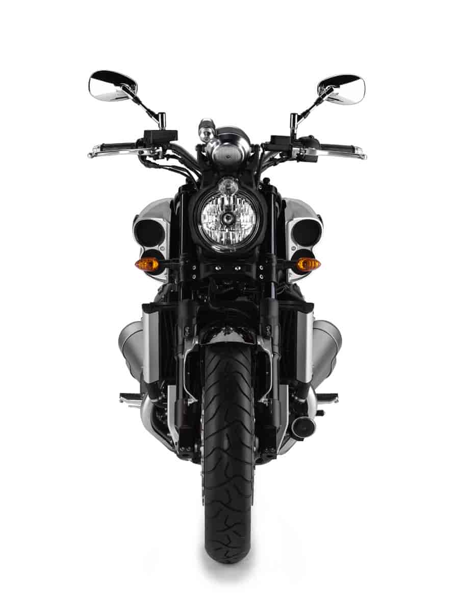 Despite the 40% higher engine capacity, 1679 versus 1198cc, and the extreme horsepower figures, the new engine of the VMAX is built more compact than the previous one!– The V-bank angle is 65 degrees, where the previous VMAX had 70 degrees. This allows the engine to be 27mm shorter.