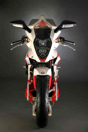 Concentrating on innovative technical solutions, the TESI 3D has been developed entirely by our in-house staff at the Bimota factory in Rimini. Italy. Dressed in our traditional color-scheme of white, red, and gold, the motorcycle is propelled by a Ducati 1079cc engine. The electrical environment is developed by Bimota.