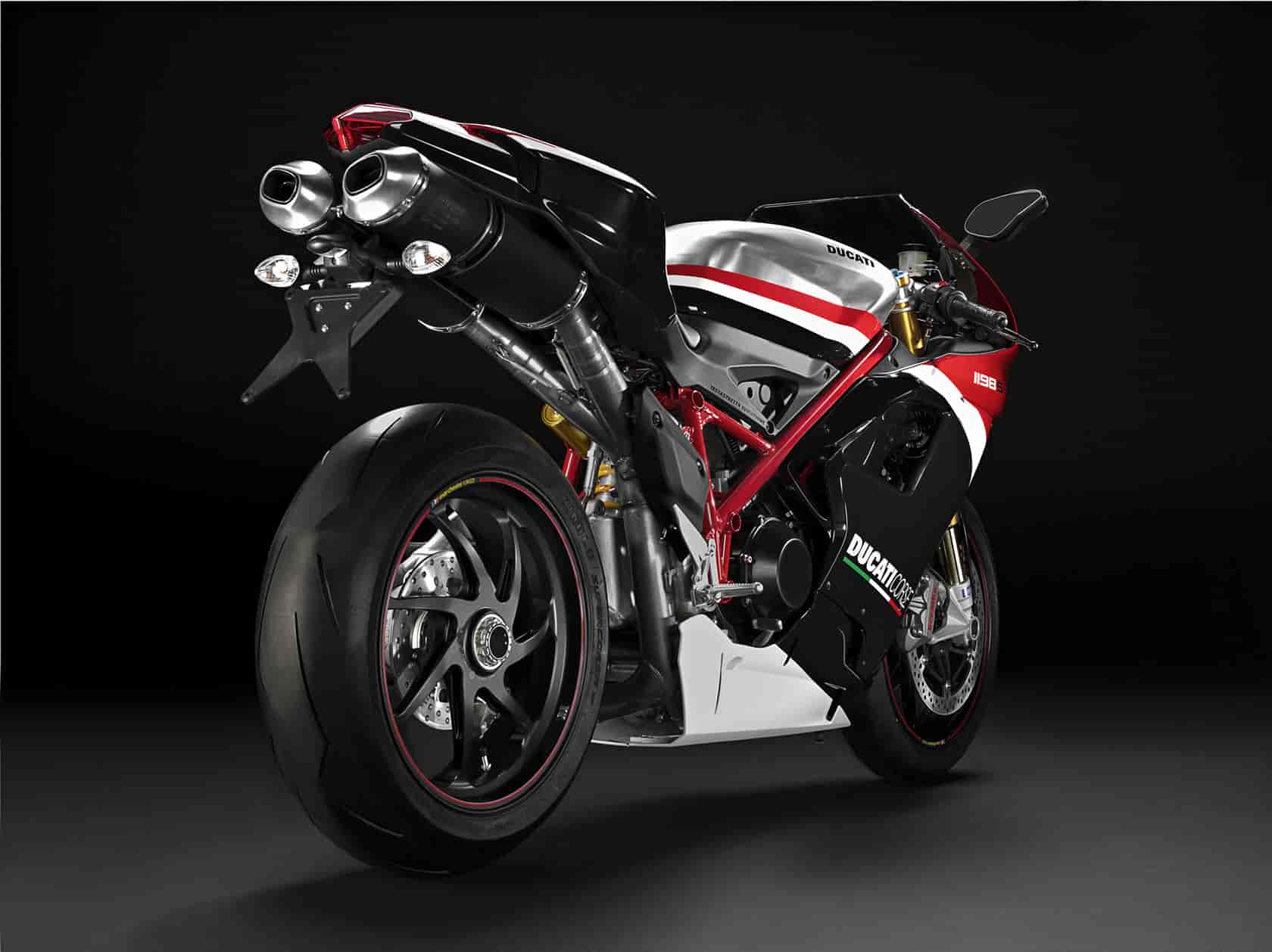 2010 Special Editions celebrate the historic Ducati Corse logo change and two world titles in Superbike and Superstock. The 1198 S Corse Special Edition and 1198 R Corse Special Edition, both equipped with factory team-style aluminium fuel tanks, Ducati Traction Control and a special celebratory Ducati Corse livery, now complement the lightweight and agile 848 now in Dark colour scheme, the awesomely powerful 1198, and the high-spec 1198 S to complete the 2010 Superbike model line-up.