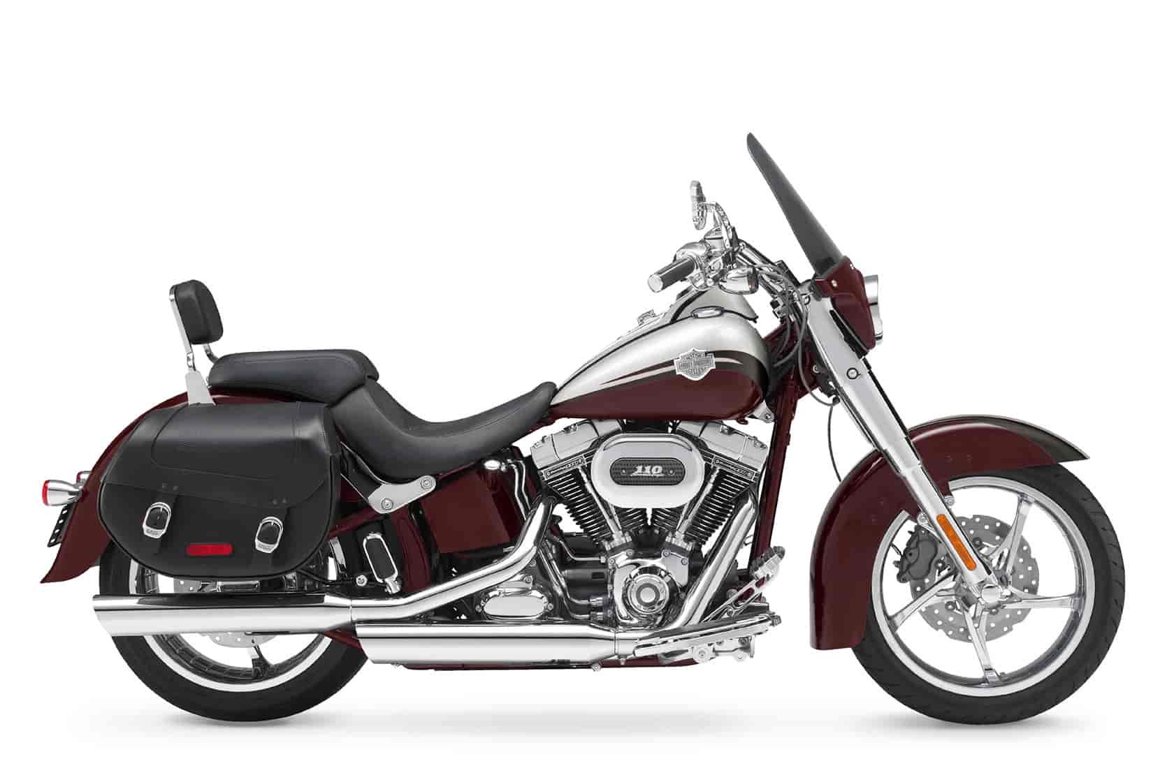 2010 CVO Softail Convertible: Designed to be a “two-in-one” touring-and-cruising motorcycle, the CVO Softail Convertible features a new compact fairing, leather saddlebags, a passenger pillion, and upright with backrest that are each quickly detachable. A new full-coverage rear fender, a five-inch digital speedometer with analog tachometer, Stinger chrome aluminum wheels and Ventilator high-flow engine air intake all debut on the CVO Softail Convertible.