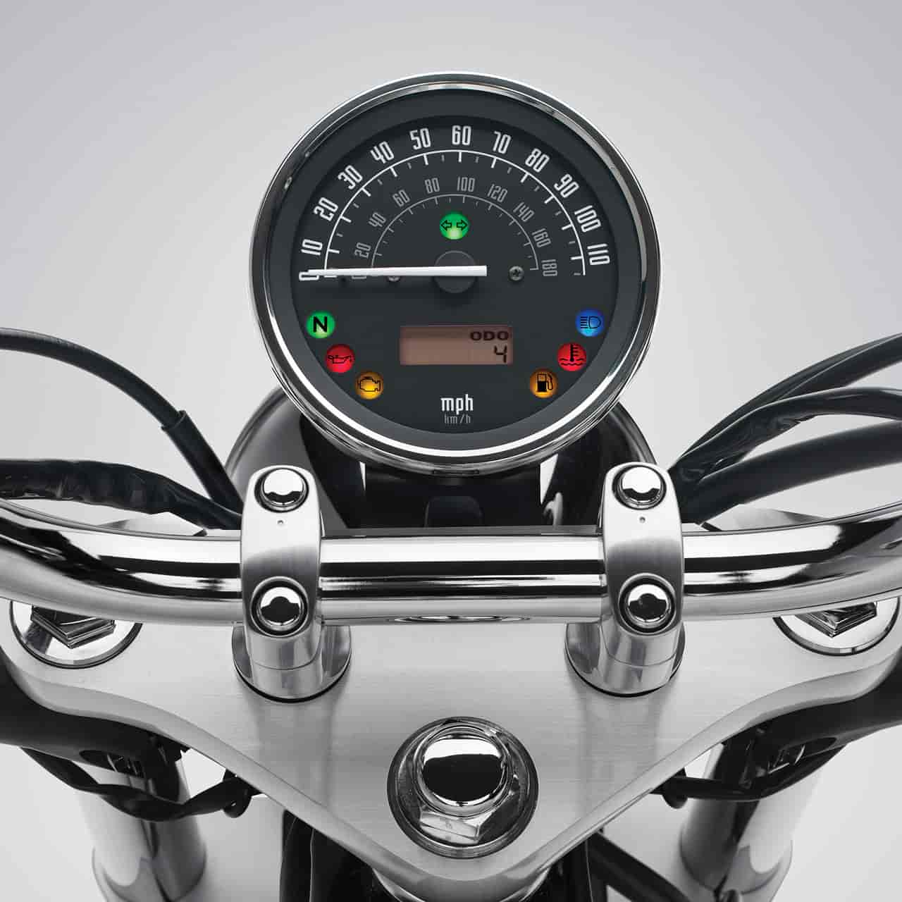 Lightweight chain final drive system continues the classic styling theme..