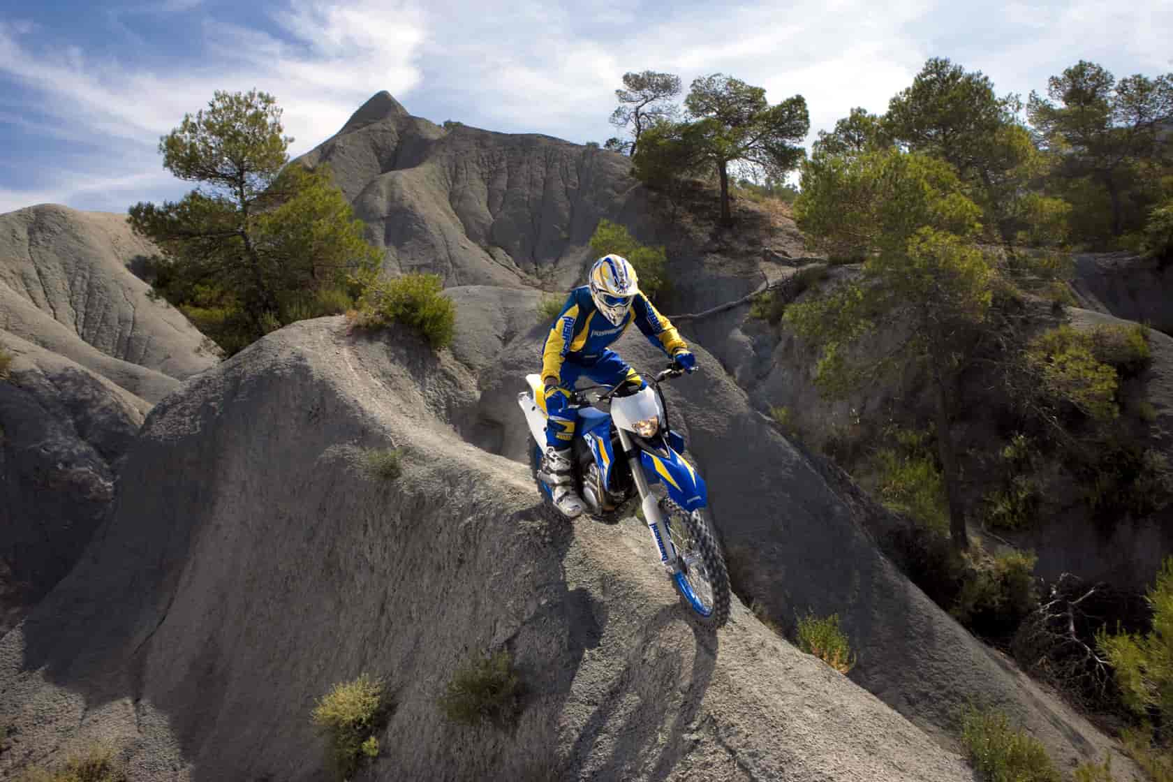 Positioned directly behind the fuel cap, it is covered by the front section of the seat. The airbox’s elevated position guarantees the intake of cool, clean air and maximum wading depth. The intake duct is in the direct downdraft from the filter to the cylinder.
