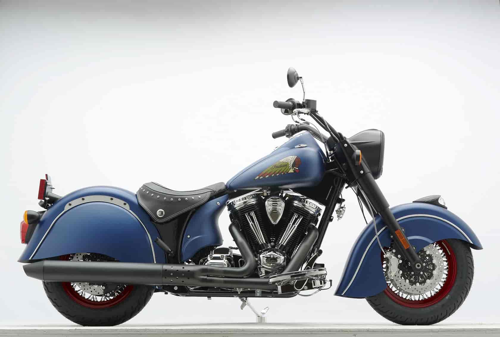 The new Classic is the entry level Chief and is the only Chief model available with short fenders. It features the Indian script tank logo and is available in standard Indian Red or Thunder Black. Optional colors are also available in Dark Water Blue or Starlight Silver. The price starts at $25,999.