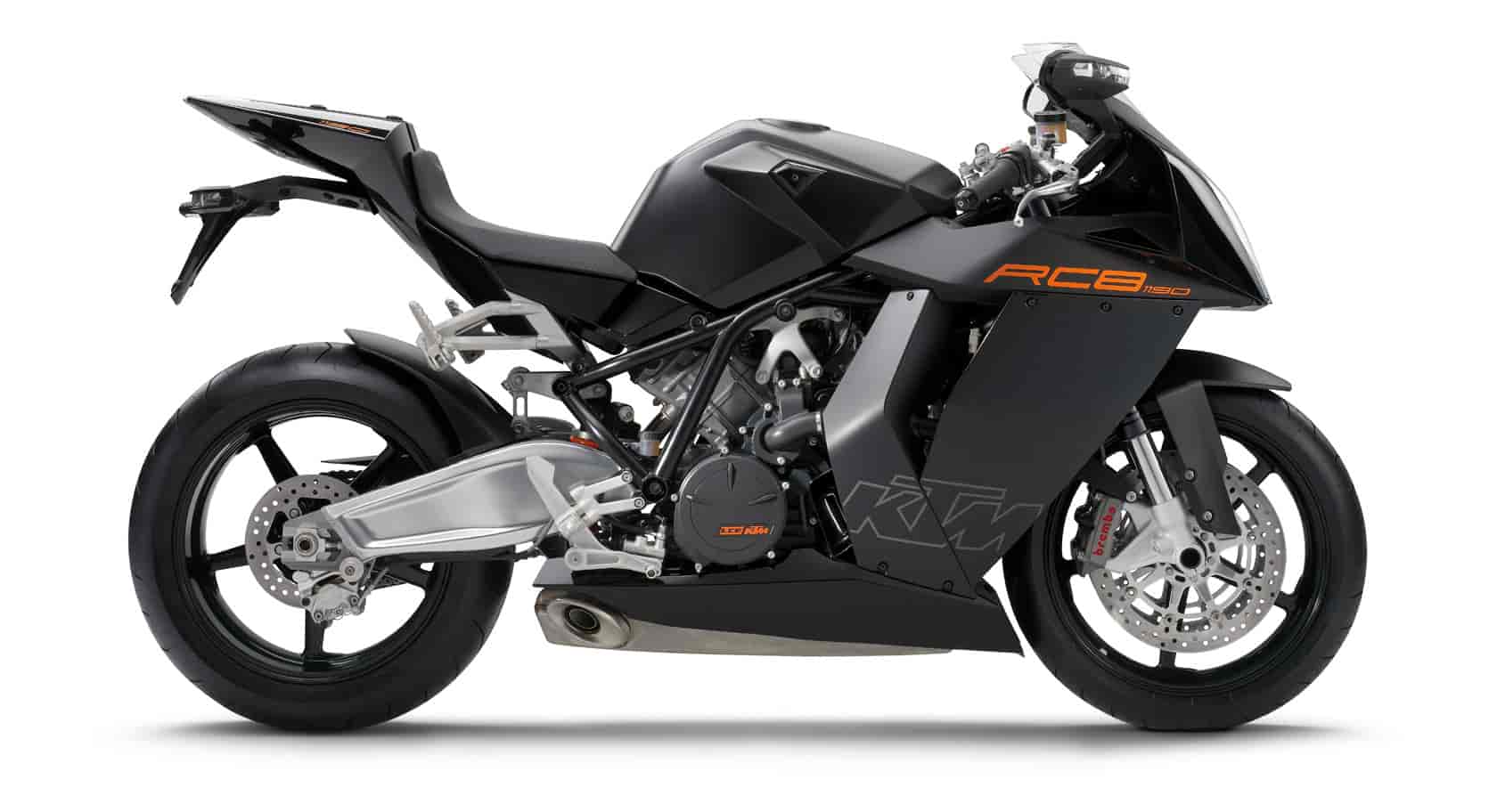 2008 marked a milestone in KTM’s history as this was the year in which the company launched the first Superbike to be designed and manufactured in Austria: the fascinating 1190 RC8. This highly stylised machine highlighted KTM’s sporty abilities on asphalt. The latest generation LC8 twocylinder motorcycle was designed from scratch. The high-tech drive has a displacement of 1148 cc and generates 155 HP and a 120 Nm torque. The carburetion is made possible by a fuel injection system with 52 mm throttle valves. The engineers positioned the silencer by centralising the masses beneath the engine, further optimising the nimble handling of the Superbike that weighs less than 200 kg with a full tank. The ultra-light frame also makes it possible to perfectly position the powerful yet highly compact engine and is equipped with premium-quality, fully adjustable WP chassis components. The subframe, footrests and clip-on handlebars are height-adjustable. A powerful Brembo brake system with four-piston monoblock brake callipers with 320 millimetre brake discs is used for superior deceleration.