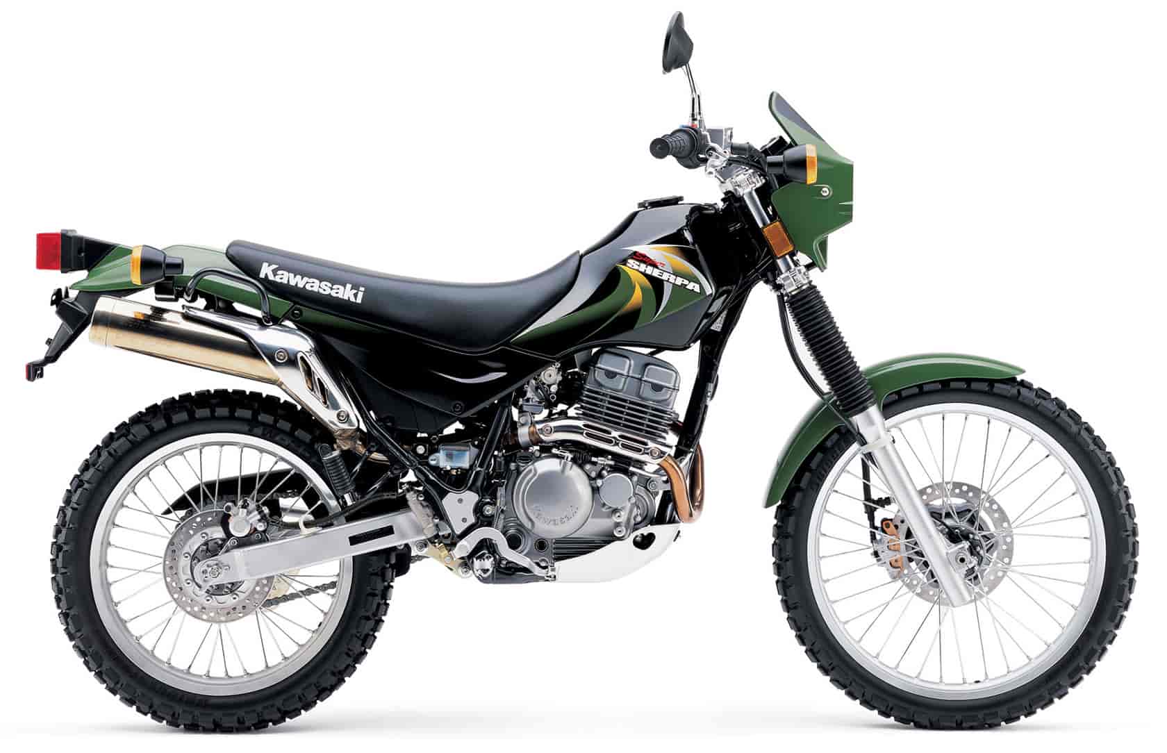 The Kawasaki Super Sherpa® motorcycle is built to tackle a wide range of terrain and appeal to a broad spectrum of riders. Its light weight, maneuverability, low seat height, electric starting, ease of operation and outstanding fuel economy help make the Super Sherpa especially appealing to novice riders who are developing their riding skills. The classic European styling, responsive handling and easily modulated power from its 249cc four-stroke engine let more experienced riders enjoy it on the street, backroads or even in the dirt.