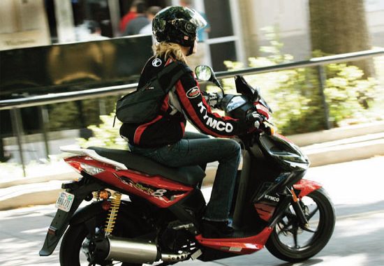 For those who want an affordable two-wheeler with an aggressive sport bike look, KYMCO has introduced the new Super 8 150. With front disc brakes and KYMCO’s popular CVT transmission, this clean burning 4-stroke sportbike styled scooter is easy and safe to ride – around town, campus or the pits.