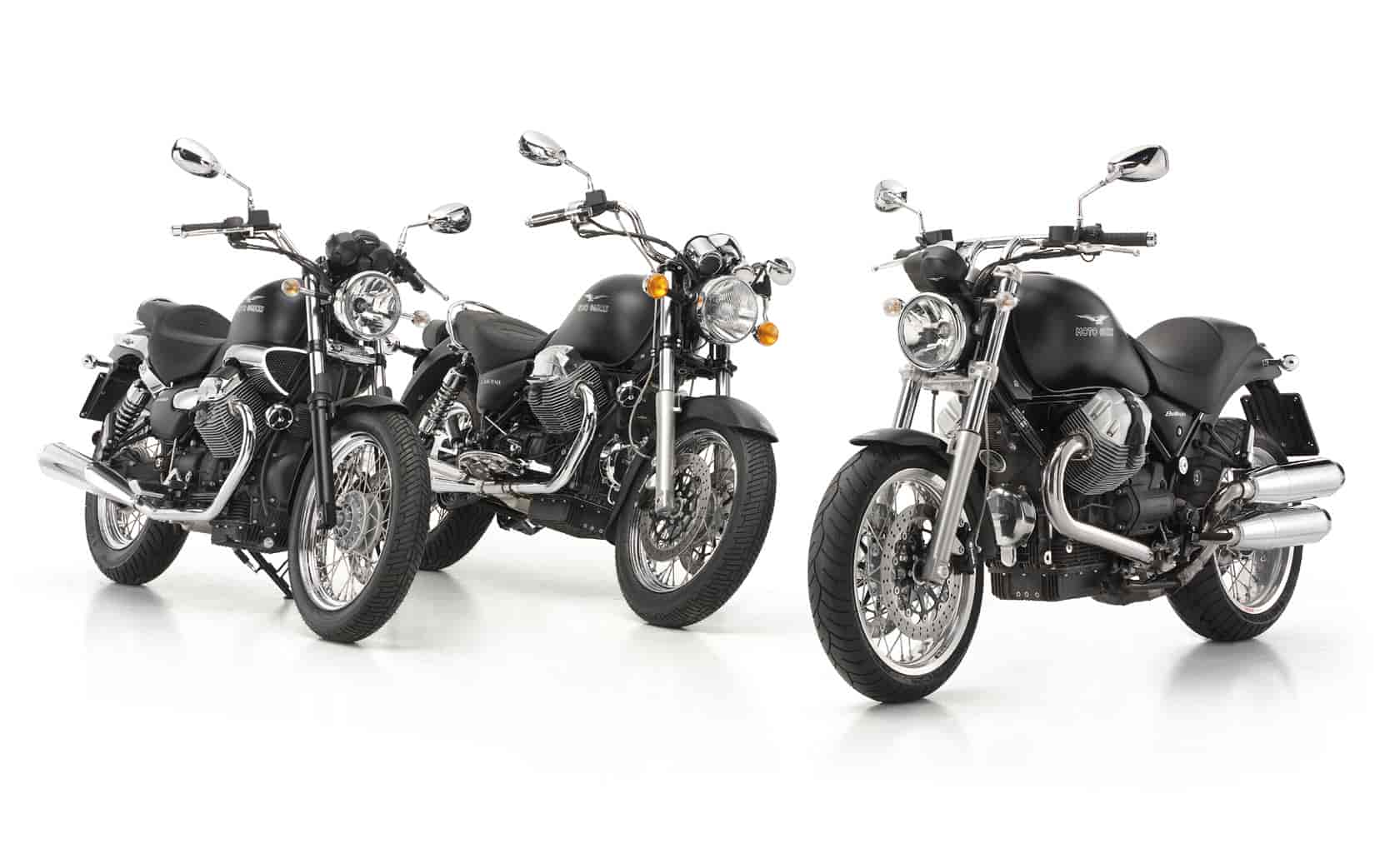 The new 2010 range of Moto Guzzi “customs”: the legendary California 1100, the nimble Nevada 750 and the sporty Bellagio 940 are all now available in the new Aquila Nera variant. Once again, the historical Moto Guzzi eagle takes pride of place on the tank, now against an all-new black livery highlighting the mechanicals and the classic lines of these three legendary bikes.