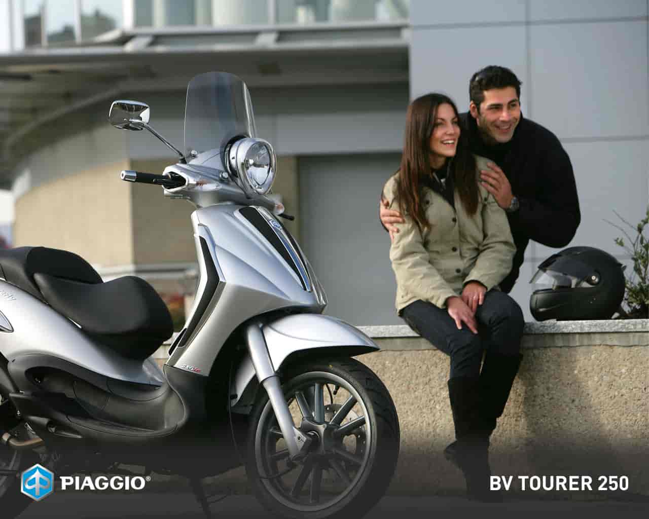 Before you get in your car on Monday morning, ask yourself this: Are you looking forward to your commute? Get yourself a Piaggio BV and you will. Twist the throttle and traffic disappears behind you. Powered by a Piaggio single cylinder, four-stroke engine with an automatic transmission, the 2010 Piaggio BV is the ideal vehicle for stop and go situations, while its 16″ wheels and dual shock absorbers make for the smoothest ride in scootering.