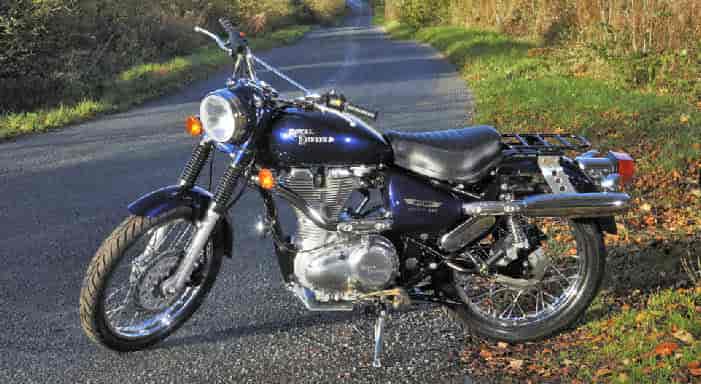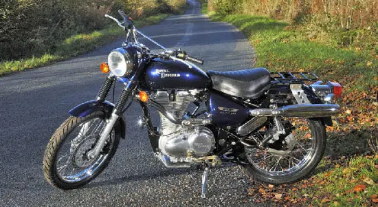 Unveiled at the 2009 NEC Bike Show this November, the Woodsman EFI is the latest UK-designed variant of Royal Enfield’s Bullet to be powered by the new fuel-injected unit construction engine and is new for 2010. Like the original Woodsman, which was produced by Royal Enfield between 1955 -’59 and sold in the USA under the Indian brand, it is a 499cc Bullet single with high bars and a raised exhaust. However, there the similarities end, because the new Woodsman also features a solo seat, handy mini luggage rack, rear set footrests and an alloy bash plate too.