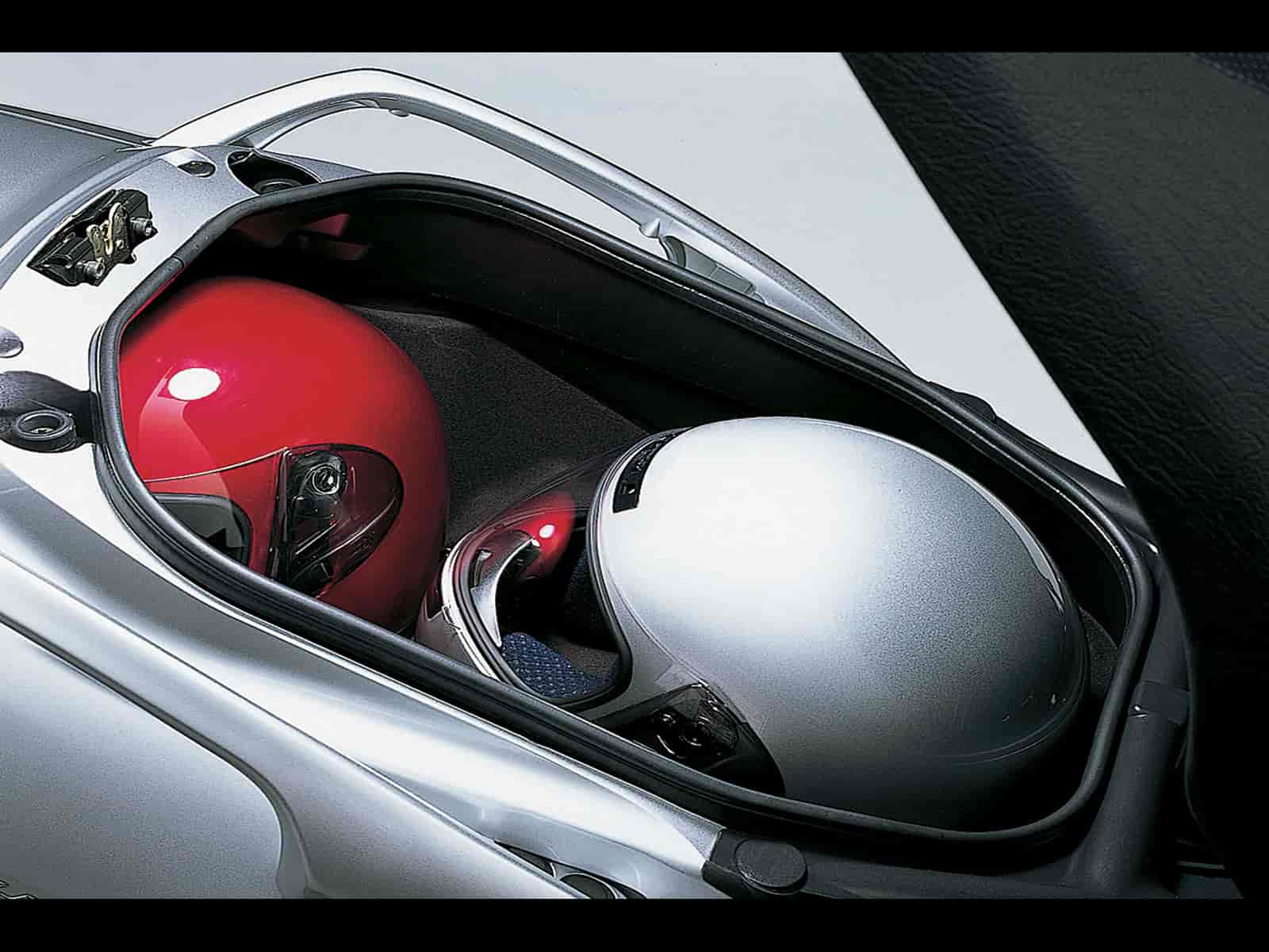 Large, illuminated 56-liter under-seat storage space – large enough for two full-face helmets