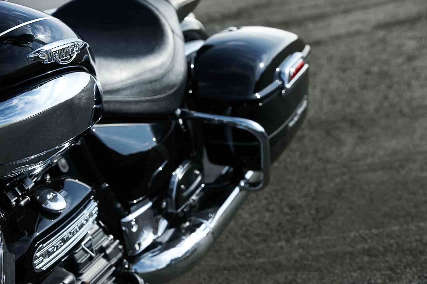 Suspension has been tuned to achieve high levels of comfort without compromising control, while the with 180mm rear tire and 16 inch wheels make for surprisingly agile handling. Comfort comes from sumptuous rider and passenger seats, detachable screen and footboards front and rear, while color matched, water resistant, hard cases and shrouded front forks with polished lower castings add more than a dash of style and practicality to this highly accomplished motorcycle.