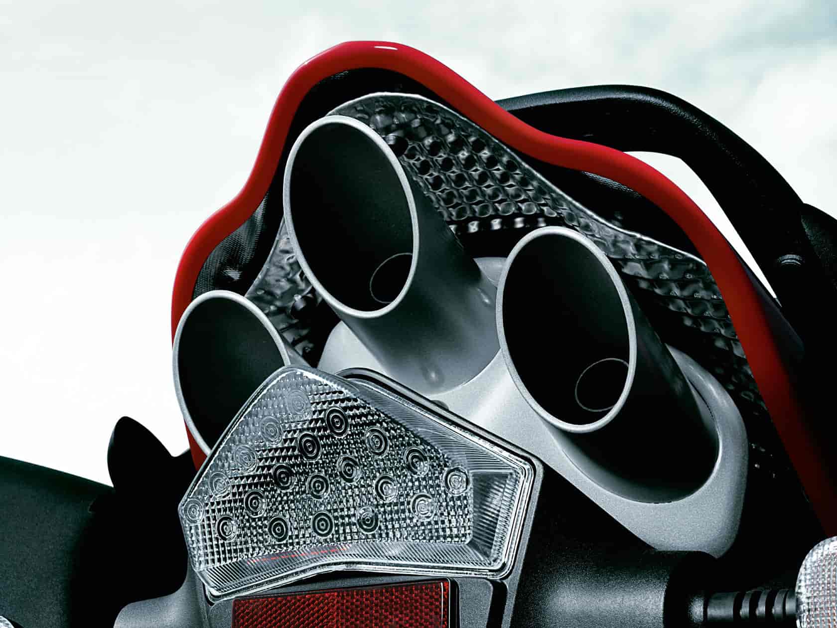 A comprehensive range of official Triumph accessories including color matched top box, center stand, aero screen, gel seat, heated grips and electrical output sockets further add to the Sprint ST’s touring personality. Like all Triumph’s, the Sprint ST comes with a two year, unlimited mileage warranty, although, as winner of Motorrad’s 50,000km endurance test in 2007, we don’t expect you will need it.