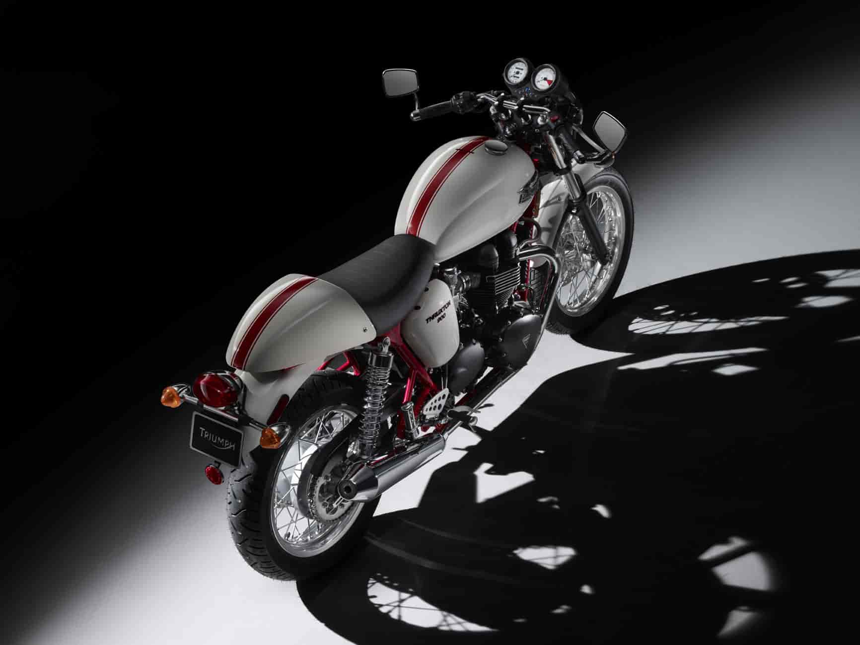 The Thruxton Special Edition debuts stunning Crystal White bodywork with red stripe.