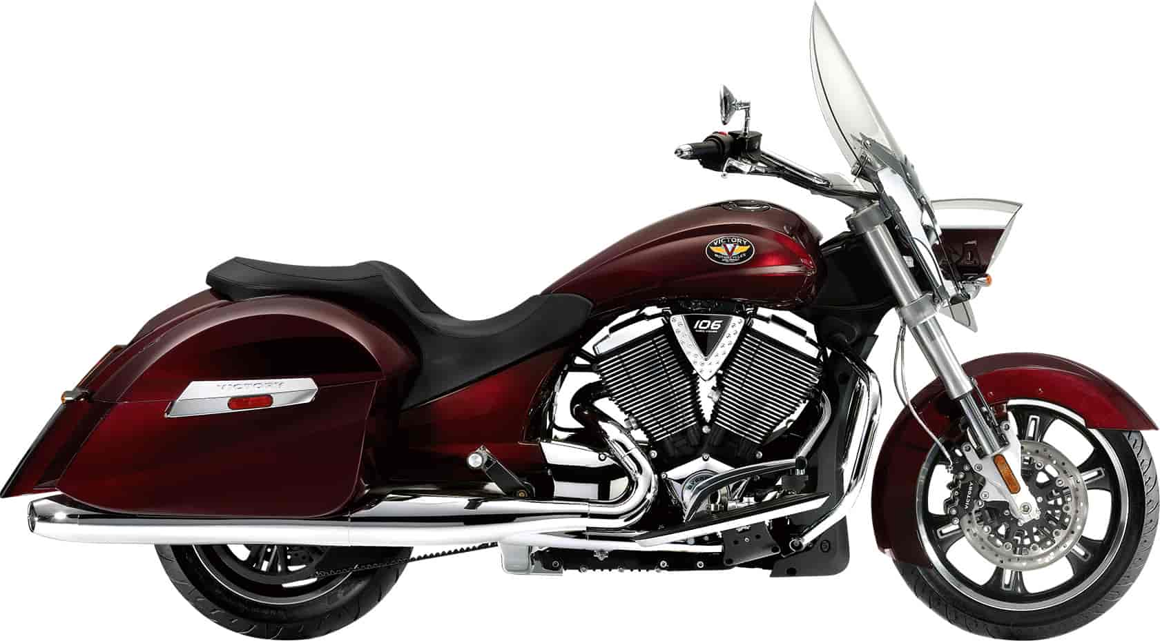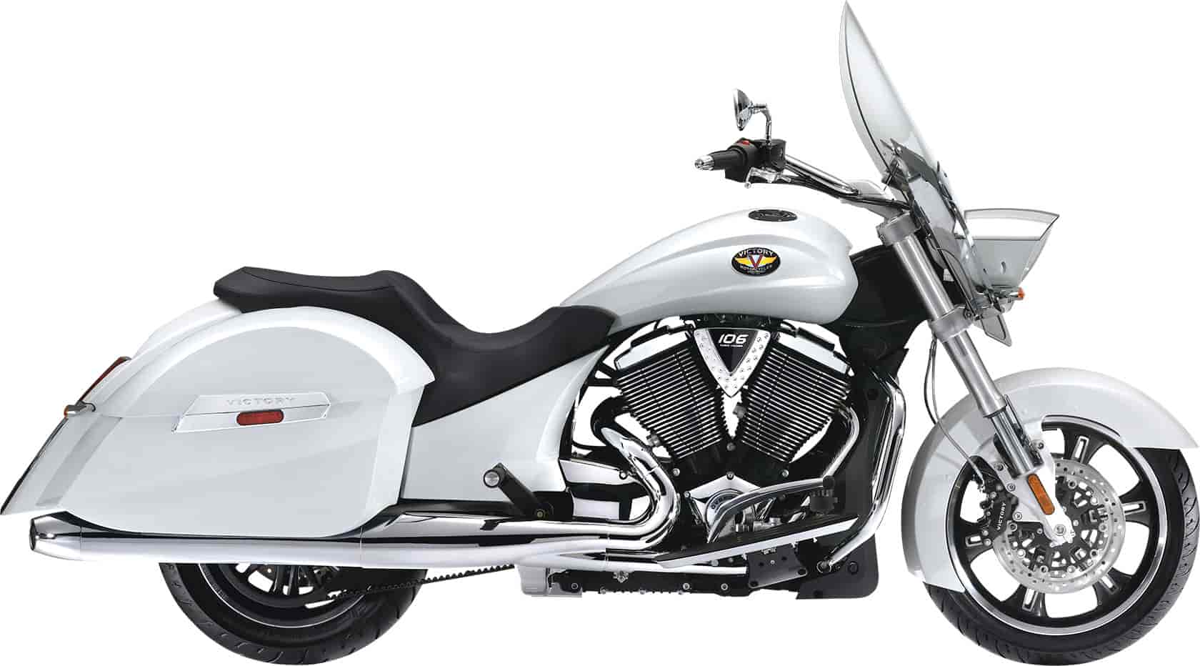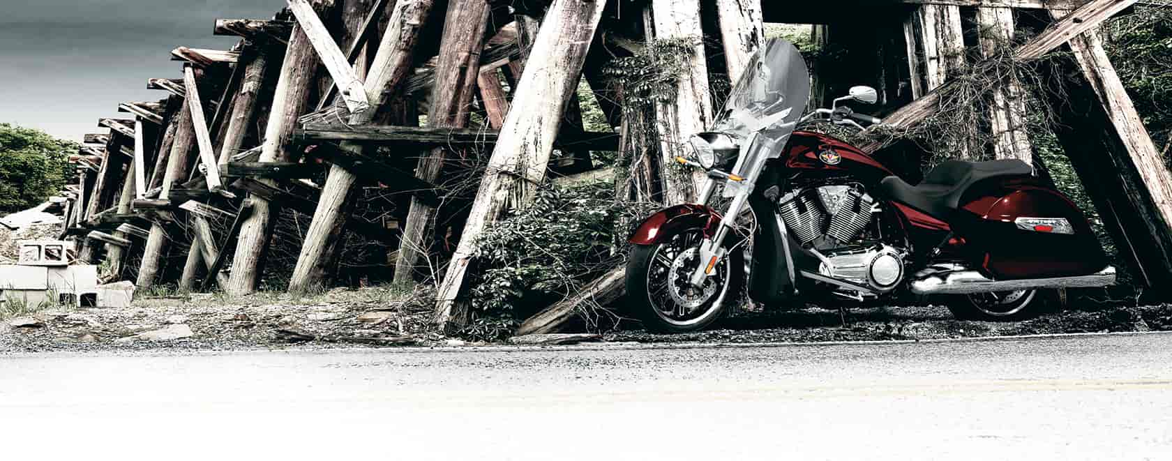 New for 2010, the Victory Cross Roads™ Motorcycle, with the most horsepower and cargo capacity in its class, has the power to take you farther and the storage to let you stay awhile. Its 106-cubic-inch Freedom® V-Twin Engine and 21 gallons of cargo capacity matched with its distinctive cruiser styling, comfortable seating, a wind-blocking windshield – give the rider an appetite for the open road.