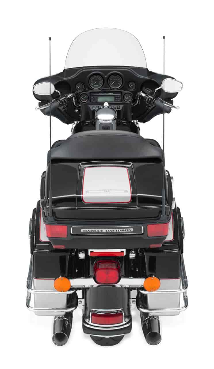 The Ultra Classic® Electra Glide® sets the standard for long-haul touring comfort and convenience. Though many imitators sought to duplicate it, the Ultra Classic Electra Glide stands tall as a benchmark for touring enthusiasts. A fourspeaker, 80-watt Harmon/Kardon® Advanced Audio System, one-piece, two-up Electra Glide® Classic comfort stitch seat with passenger backrest, adjustable fairing-mounted air deflectors, vented removable fairing lowers with integral glove boxes, spacious Tour-Pak® carrier and injection-molded hard saddlebags, and standard electronic cruise control, all combine comfort and function as styling touches that make it a Harley-Davidson.