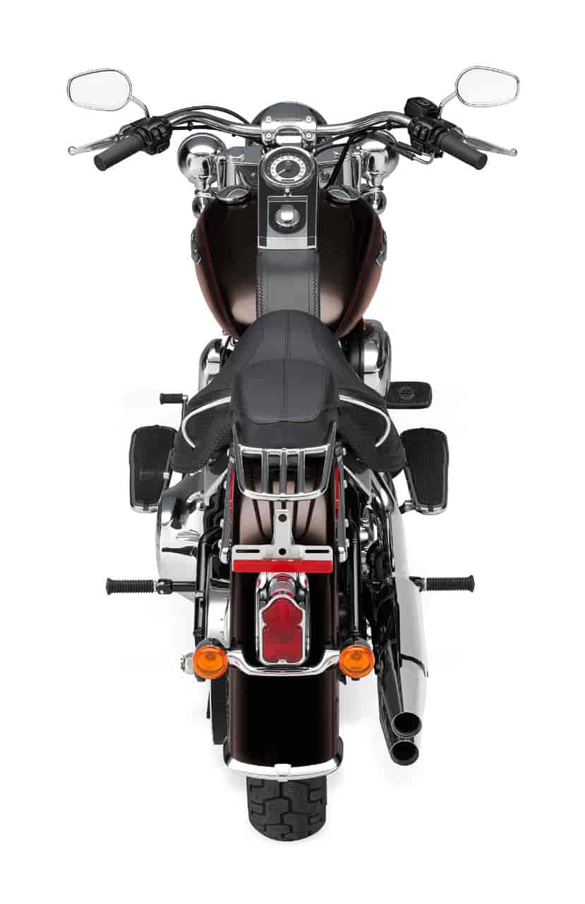 o Two-piece, two-up Softail® seat with “collapsing” sides and removable pillion and chrome grab rails