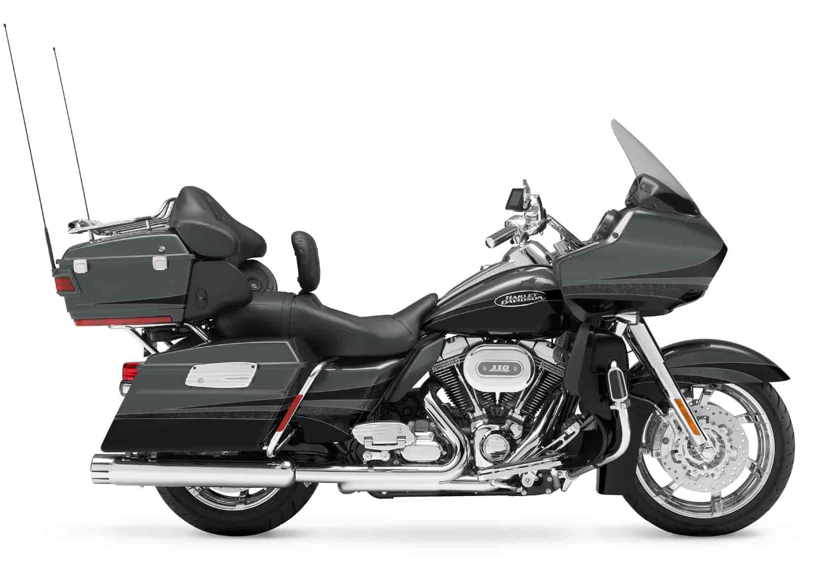 The CVO™ Road Glide® Ultra, a super-premium touring motorcycle, offers its rider and passenger exceptional style, comfort and performance. The aerodynamic, frame-mounted fairing offers a lighter steering feel than a fork-mounted fairing, and incorporates dual headlamps and a cockpit-style instrument display.