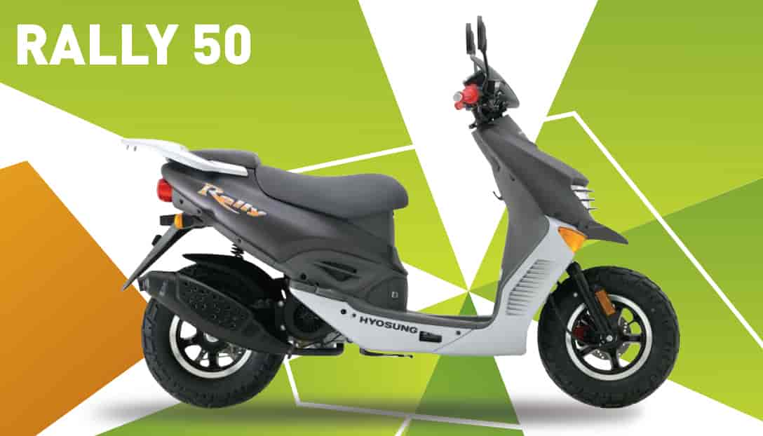 We all love to have fun, but traffic snarls aren’t fun, are they? Hyosung’s rugged Rally 50 provides the perfect antidote to an increasingly difficult problem. Moreover, its chunky 10-inch tyres are the masters of grip, and will even maintain a strong foothold heading up grandpa’s gravel driveway. The Rally’s nifty flat-floor design allows plenty of room to carry cargo, and the off-road style cockpit and handlebars reek of sturdiness. Commuting’s no longer a chore, and parking is about position, not handing over your hard-earned to parking attendants. The Rally 50: a journey of discovery.