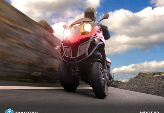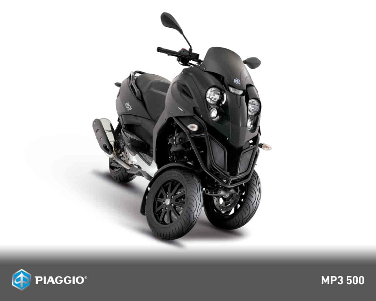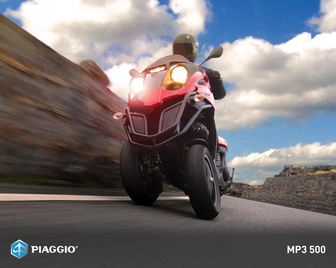 The 2011 Piaggio MP3 500, with aggressive styling and performance, is the three-wheeler for people who want to stand out. Riding has never been this easy, enjoyable, secure and fast. When you take 20% less braking distance required, pair it with a lean angle of 40 degrees, you get a perfect machine for impeccable road holding in all road conditions.