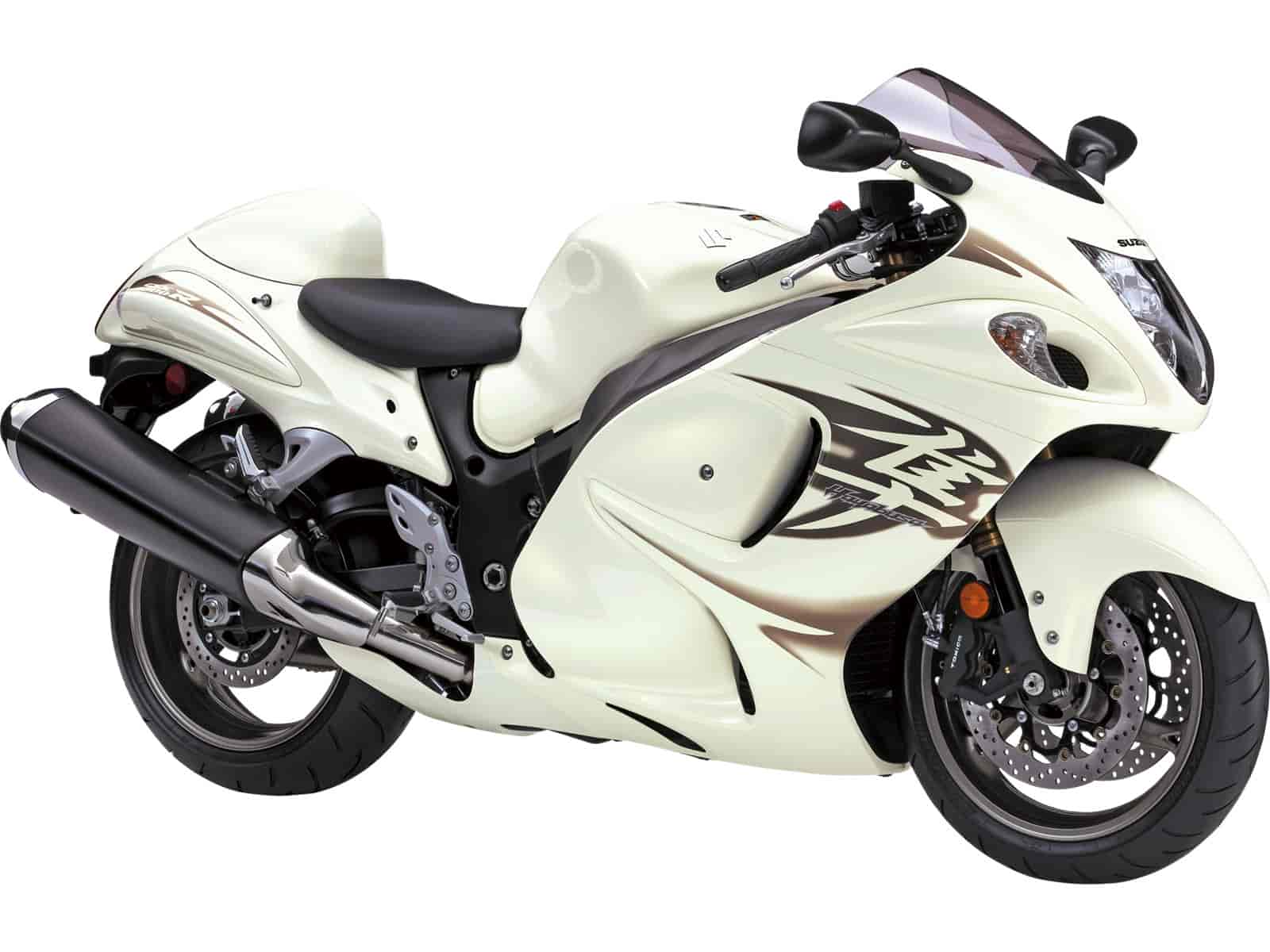 New for 2011: The Hayabusa is available in new colors and graphics (Pearl Mirage White with gold trim and Pearl Nebular Black with red trim).