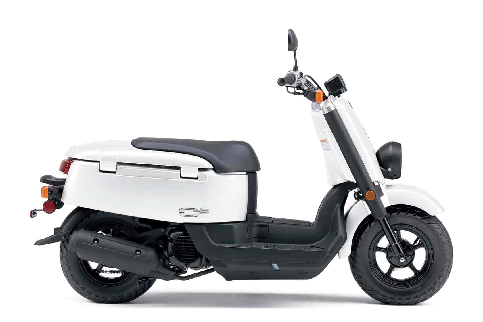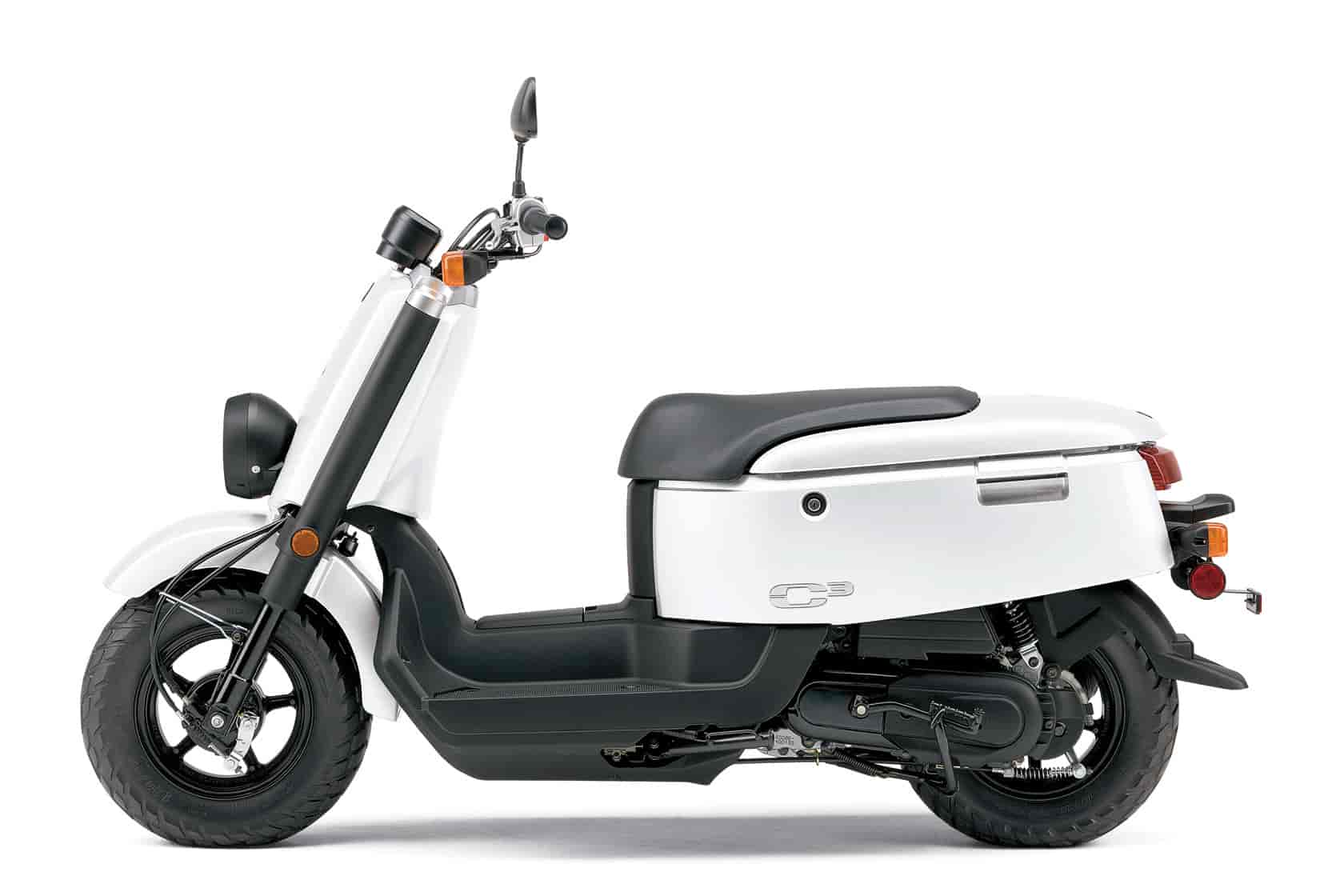 That cube shape gives the 2011 Yamaha C3 great storage capacity – about 9 gallons – and it’s hard to beat a 49cc fuel injected four-stroke engine, big wide tires, motorcycle-style fork and that zippy engine means it’s a hoot to ride too.