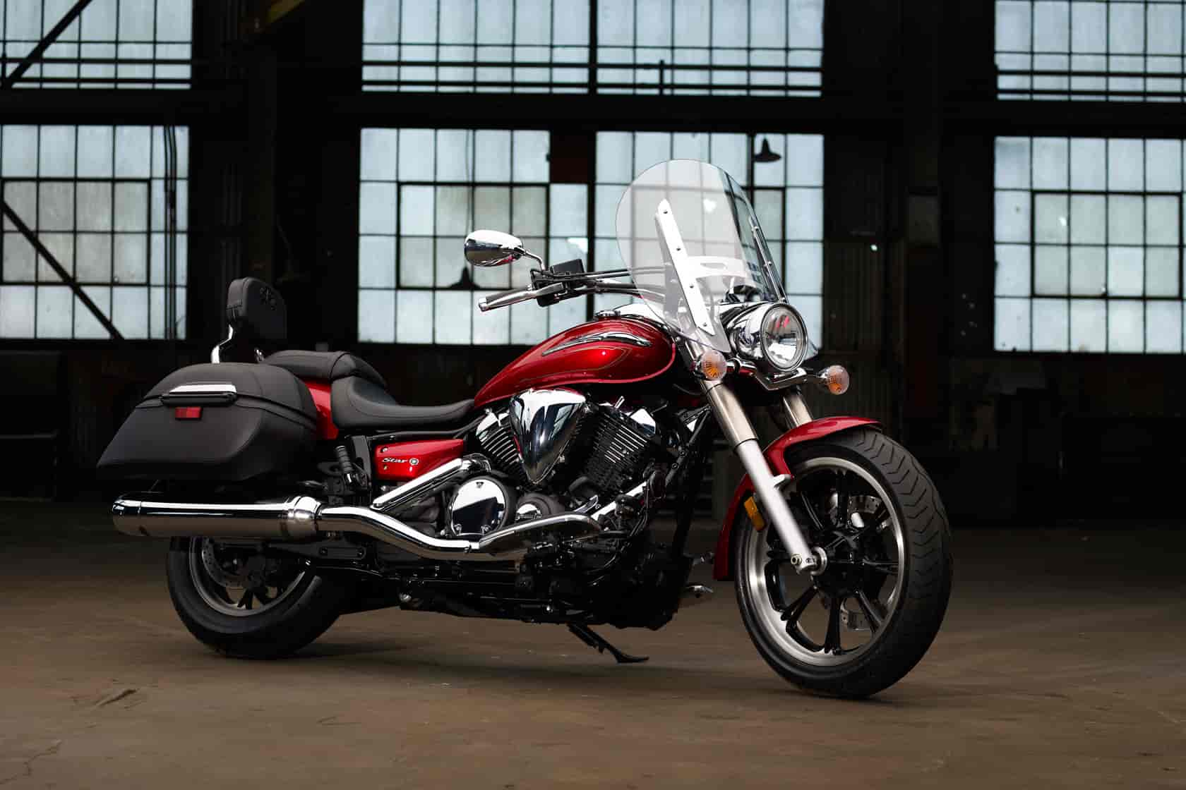 The V-Star 950 features a full size chassis, high quality fit and finish plus the most sought after touring items. A fuel injected 942cc V-Twin takes care of the “go” while a super low seat height, light agile handling plus windshield and saddlebags will appeal to veteran and “newbie” riders alike.
