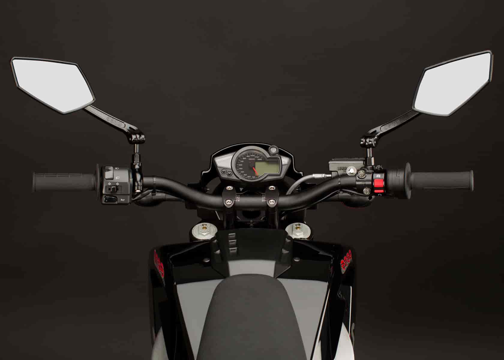 Aircraft grade aluminum is exclusively used in the construction of the lightweight and rigid Zero S twin spar frame. One look at the frame and it speaks for itself. It is aggressive, strong and one of the main reasons that the Zero S can take on anything in an urban environment. Designed to have a low center of gravity, the Zero S is highly maneuverable and responsive. The body is completed using bold new bodywork to give it a contemporary, aggressive and naked look.