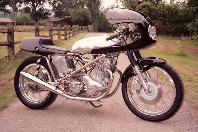 Terry Mead of Mead Competition Cycles of Plunkley Kent England build frame kits for the Seeley Mk4 with a Norton Commando engine. Colin Seeley Replica frame kit by Terry Mead.