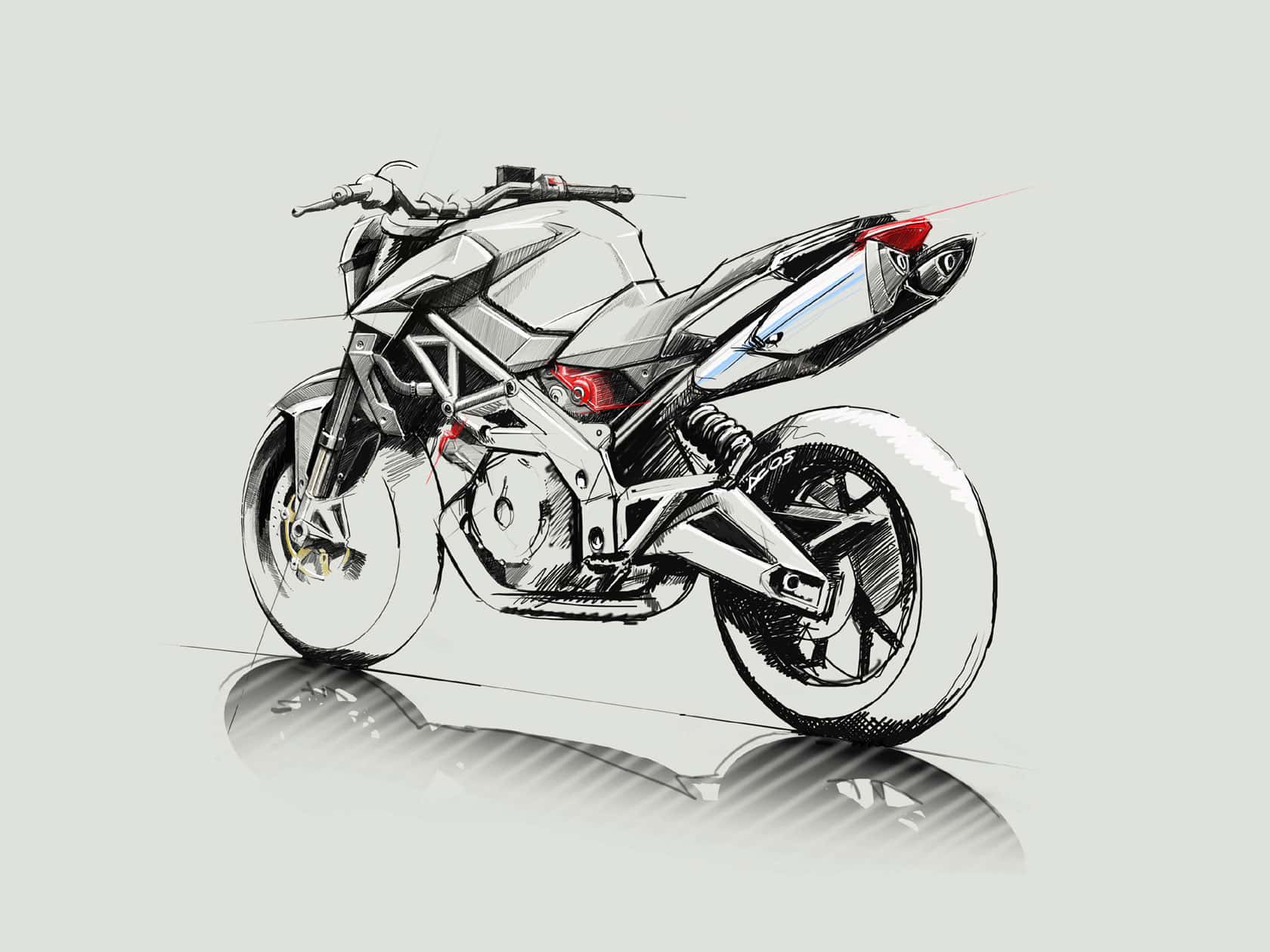 The tank-seat-tail assembly further emphasises the compactness of the bike. The rider becomes one with the machine, perfectly integrated in the short, agile, and sporty bike. The strongly tapering tail also incorporates the twin exhaust with triangular silencers, a feature which makes the design even more aggressive, while keeping weight distribution highly symmetrical.