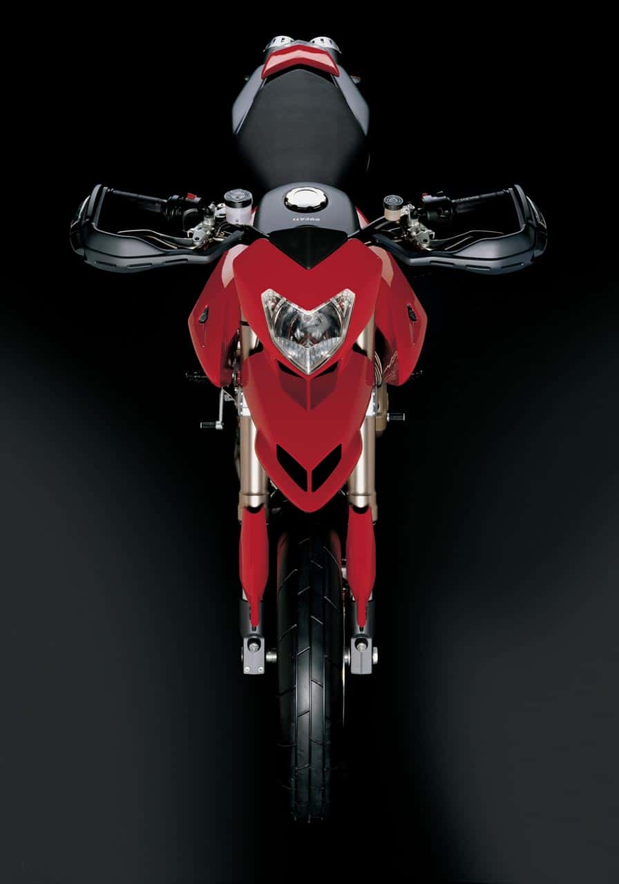 Taking advantage of the compactness and agility of a traditional supermotard, Ducati has upped the ante with potent street power thanks to a new air-cooled twin engine. The front of the bike is as slim and compact as a single cylinder, in part thanks to the engine layout, but also due to the absence of weighty cooling radiators.