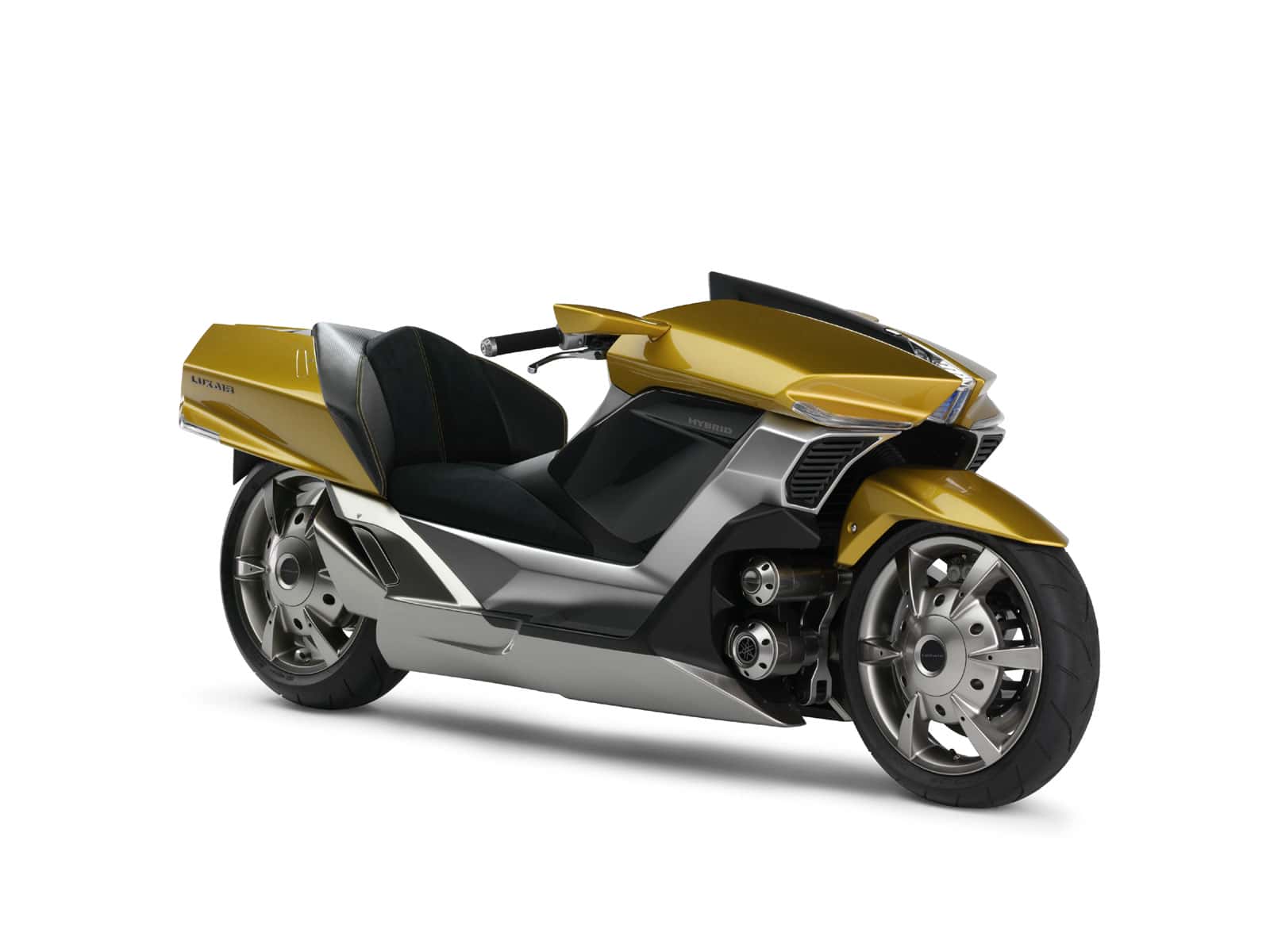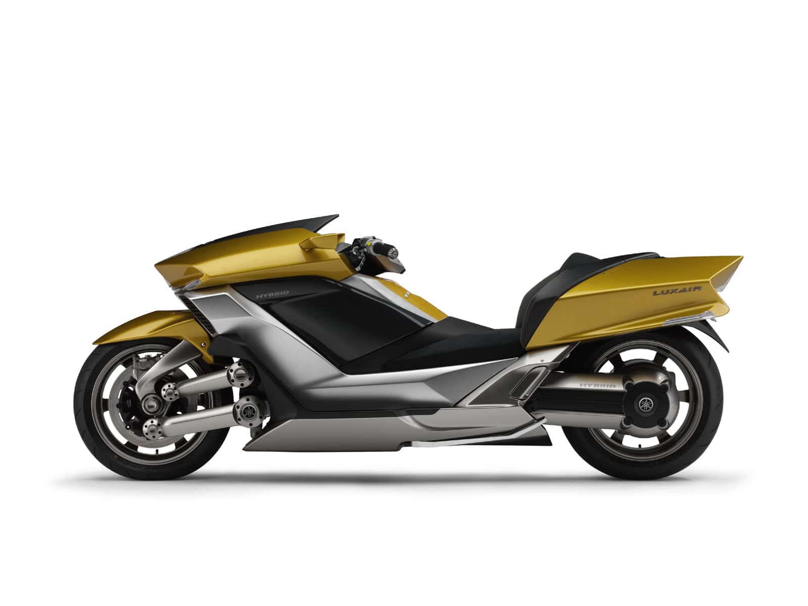 This is a hybrid type motorcycle with a gasoline, liquid-cooled engine and an electric motor that function in parallel to provide a riding experience that could never be achieved with only an engine. Drawing on Yamaha’s “G.E.N.I.C.H.” ideal of electronic control technology use and our “Smart Power” concept of employing new power sources, this model offers a new sort of rider-machine communication. During acceleration the electric motor kicks in to assist the engine and when cruising the motor switches to a generating function to re-charge the battery. The engine-brake force created during deceleration is also used to generate electricity to charge the battery. Yamaha’s super-thin YIPU (Yamaha Intelligent Power Unit) is built into the rear hub to provide the electric power assist during acceleration and when wheeling the vehicle by hand, and it also provides a reverse function. In a collaboration with Yamaha Corp. (music) this model also mounts a special audio system,”Natural Sound Motorcycle Audio System.”