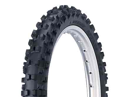 - The front tire’s intermediate and shoulder knobs are designed to clean the tread and provide optimum traction.