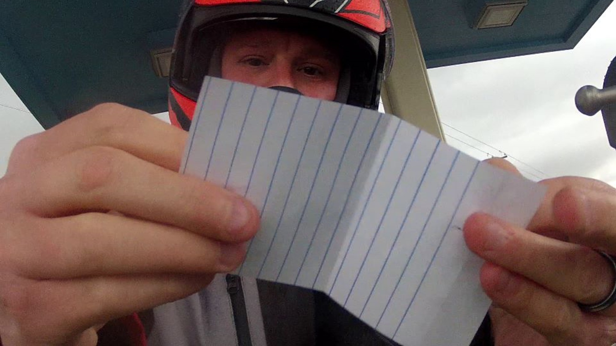 I also tested the specifically waterproof “Napoleon” pocket on the inside left breast. The picture above shows me displaying a folded piece of white notebook paper. That square of paper rode inside the waterproof pocket for half an hour through pouring rain and wind. As you can see, it stayed completely dry. Make sure to check out the video review linked above to really get a feel for how intense that rain was. And I want to stress, all that was without the liner in place.