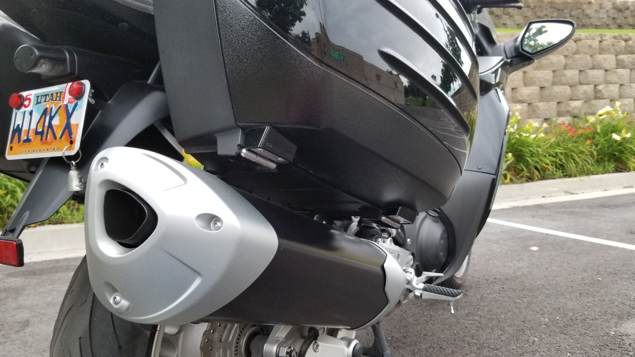 Subjectively, it’s an attractive setup that doesn’t draw unnecessary attention to itself. It doesn’t remind me of Star Trek warp nacelles or The Predator’s shoulder cannon, both of which are cool but don’t belong on my bike. And it’s not an aggressively simple coffee can clone that screams parts-bin either. As fitted to the Kawasaki Concours, the angle of upsweep matches the tail section nicely and the width of the can is in harmony with the width of the side cases. It’s neither tucked in or turned out.