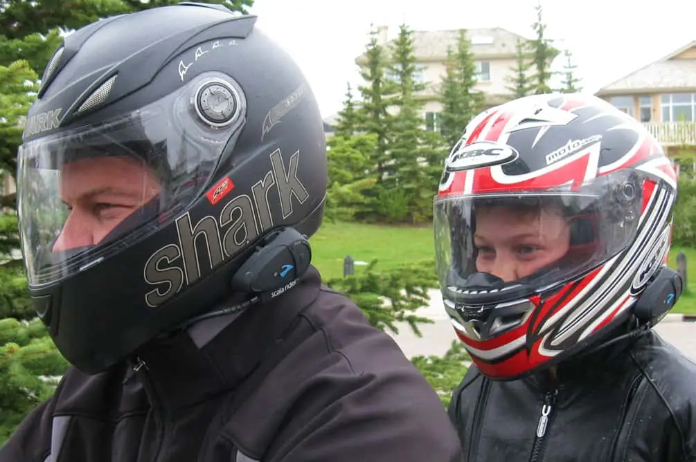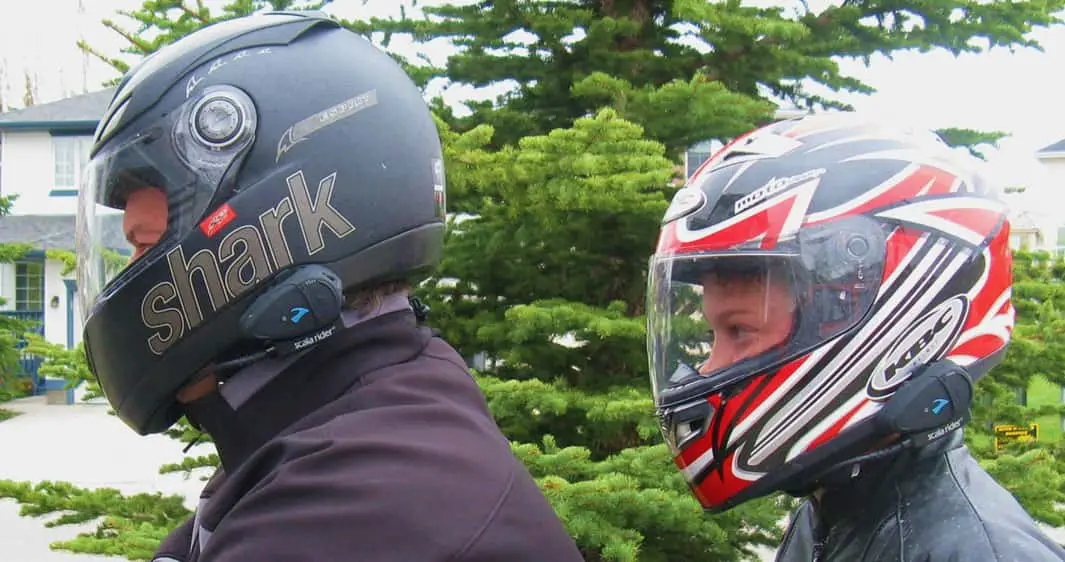 The scala rider TeamSet offers excellent Motorcycle intercom features between rider and passenger, paired up and set for the trip ahead.