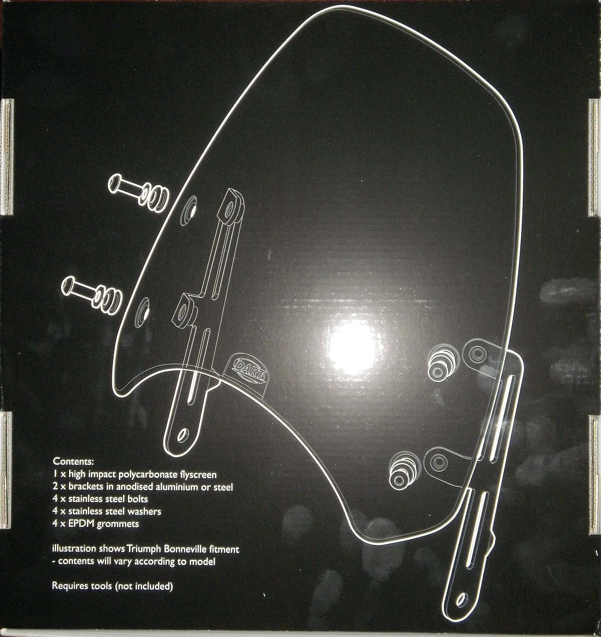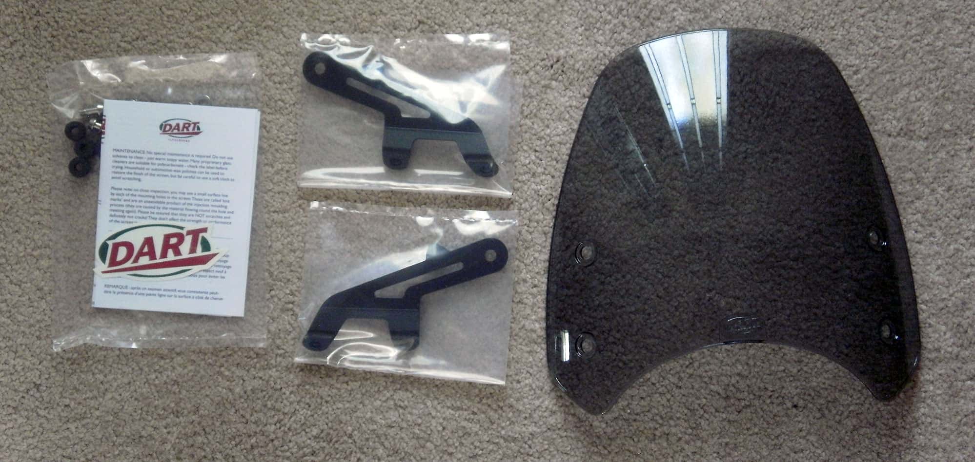 With the included hardware (specific to the model) and enclosed instruction book installation was quick and easy. 4 bolts, 2 brackets, 2 Allen keys, DART flyscreen and 10 minutes were are all that was required. The only small issue we came across during installation was the orientation of the brackets as they are not labeled in the book or on the brackets themselves. After sorting that out and following the clear instructions the screen was fitted. Overall the fit was impressive and looked well thought out.