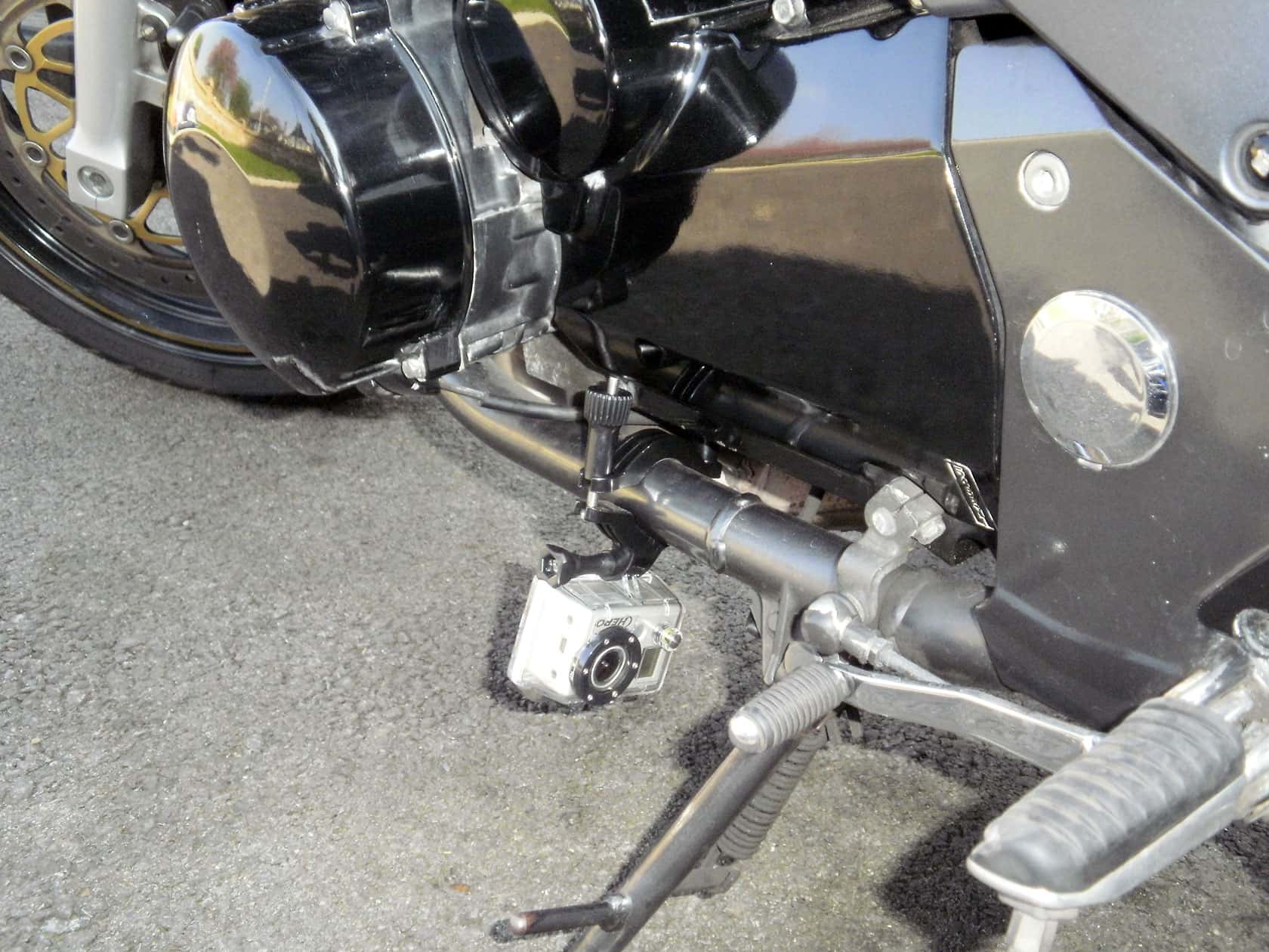 The GoPro Roll bar tube mount mounted on the motorbike’s chassis is a unique opportunity to present a view not normally seen (the most seen view is the handlebars) in a video. You can have it facing forward or backwards, below the frame or even at knee height depending on mount locations. We found it was easy to mount on even odd shaped bars and the “vibration dampener” on the inside of the mount was a really nice touch. The large black plastic screws helped fix the mount even with motorcycle gloves on, although the length of the plastic screws can be an issue depending on mount location. The only minor issue we had was the nut (see pictured below) would fall out of its plastic hole when securing the camera to the mount, this is the same with all GoPro mounts, not just this one and we would like to see GoPro use a “lock-tite” or other product to secure the nut in place.